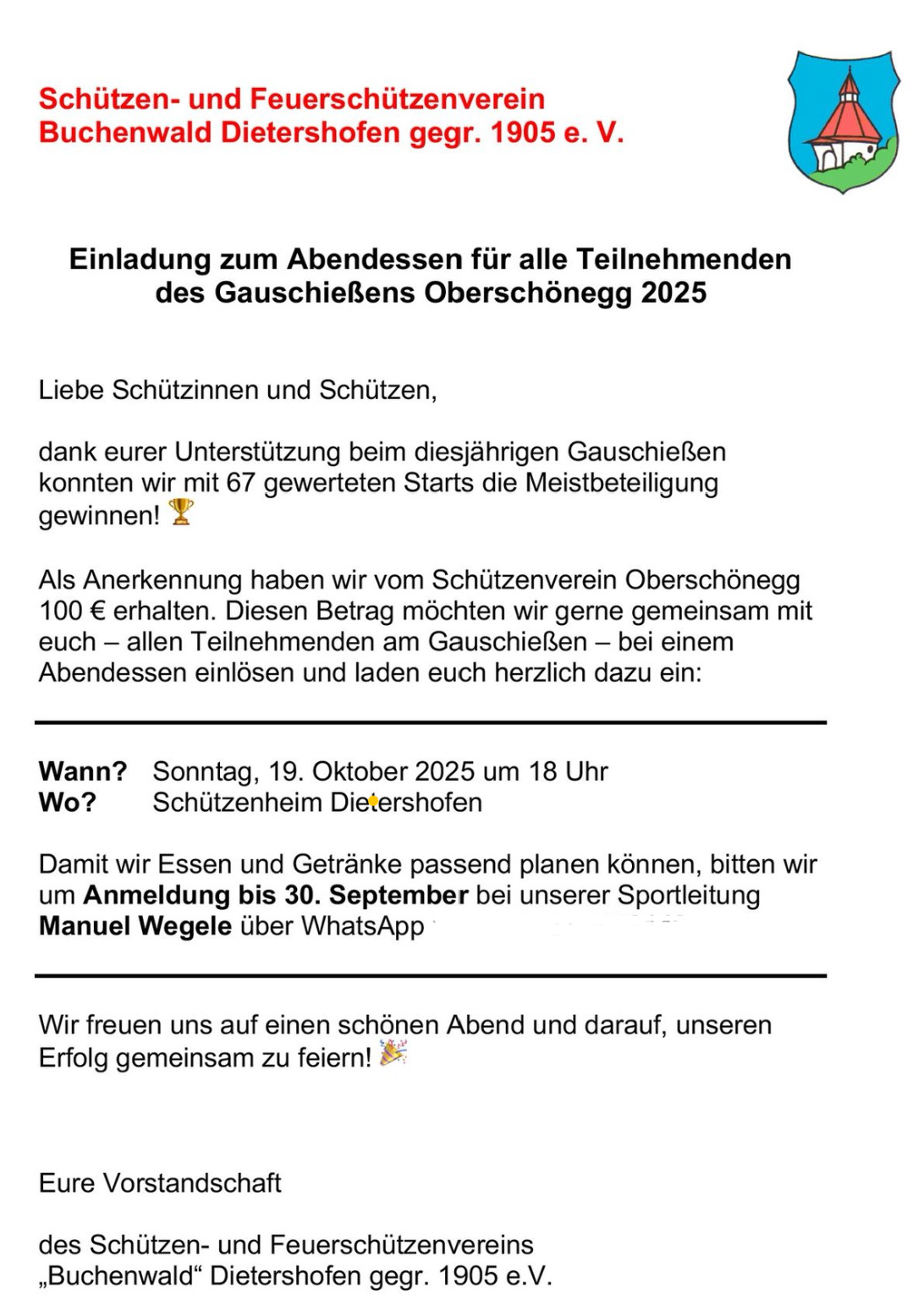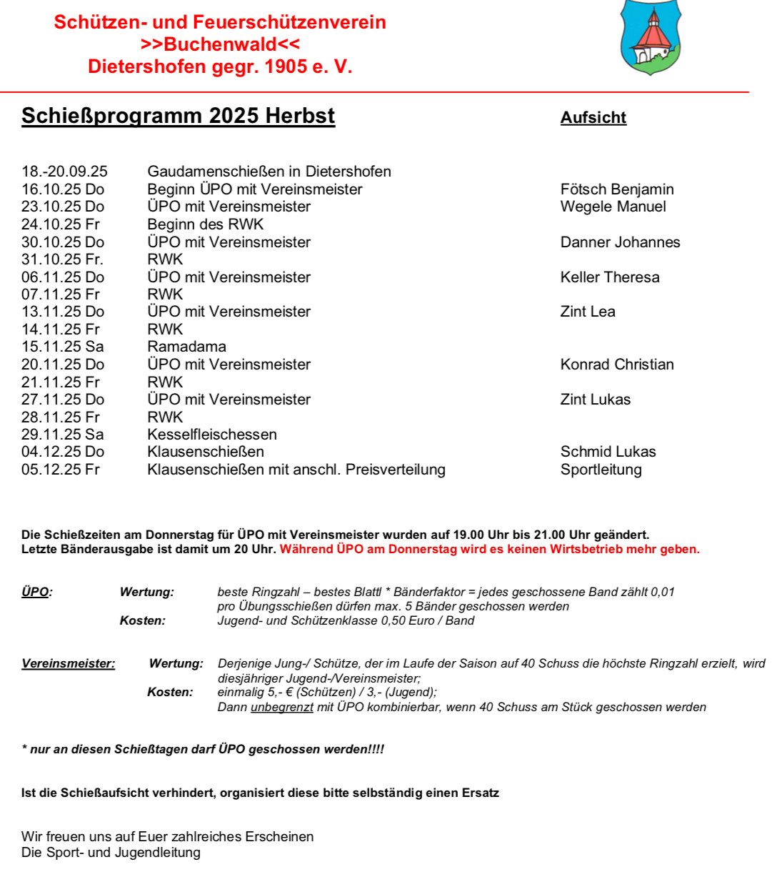 © 2025 Schützen- und Feuerschützenverein Buchenwald Dietershofen e. V.
